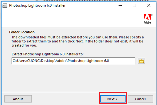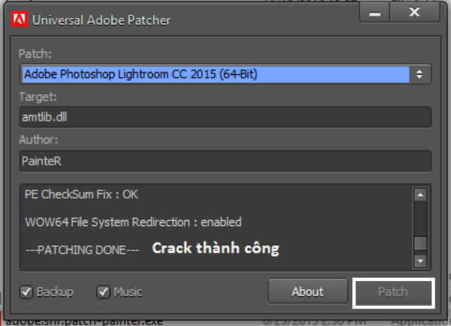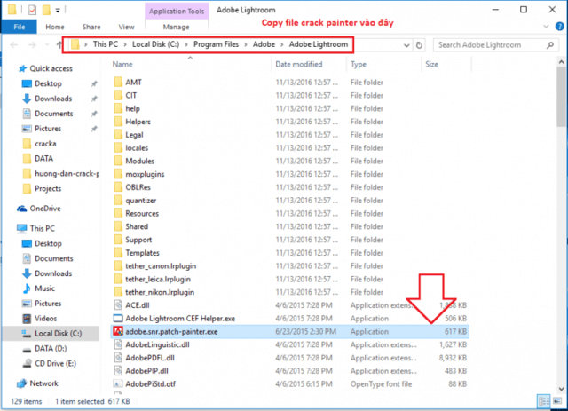 • Sao chép file adobe.snr.patch-painter.exe vào thư mục cài đặt Lightroom
