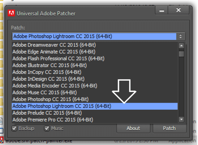 • Trong danh sách phần mềm, chọn Lightroom CC 2015