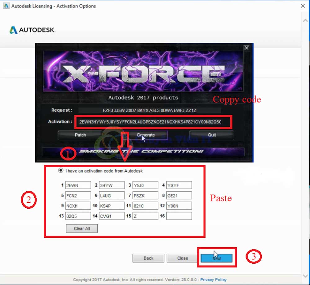 Bước 14: Copy mã Activation Code → dán lại vào phần mềm → chọn Next.