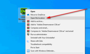 Cách 1: Nhấn chuột phải vào biểu tượng Dreamweaver CS6 → chọn Open file location