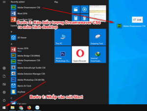Bước 10: Kéo biểu tượng Dreamweaver CS6 từ Start Menu ra ngoài màn hình Desktop để tiện sử dụng.