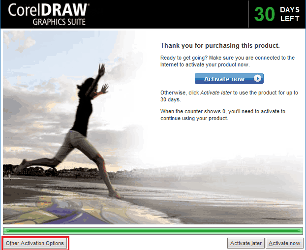 Bước 10: Khi phần mềm hiện cửa sổ mới, bạn chọn “Other Activation Options”.