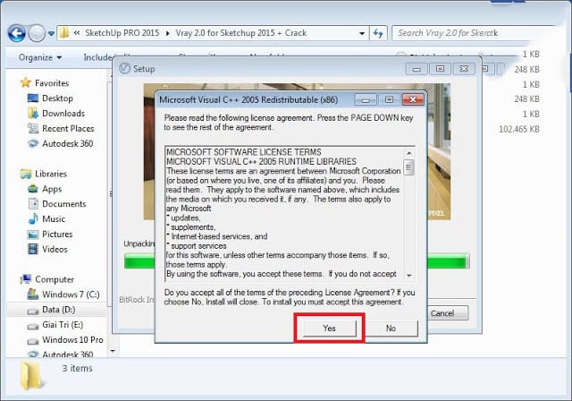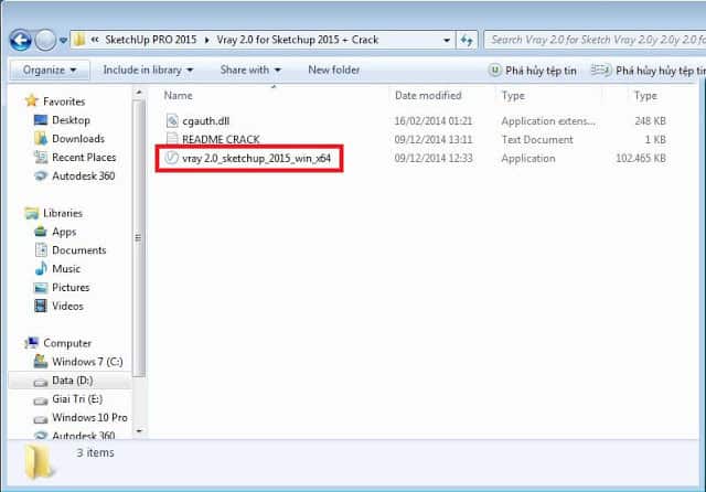 Bước 1: Chạy file cài đặt V-Ray dành cho SketchUp 2015.