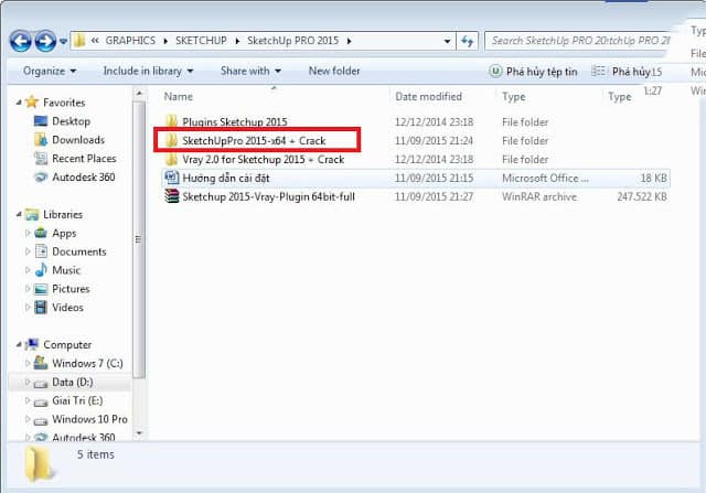 Bước 1: Giải nén file SketchUp 2015 vừa tải về máy.